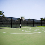 The sport area is available all day and features a full-size tennis court and a separate half-court basketball area.